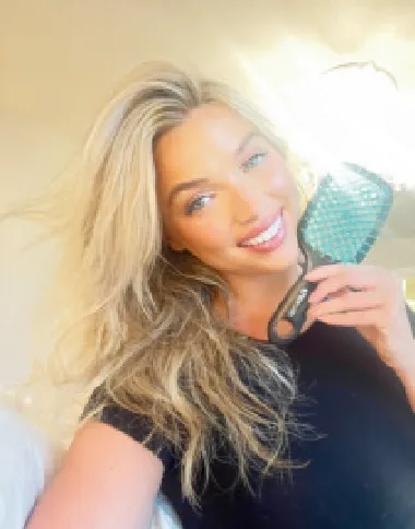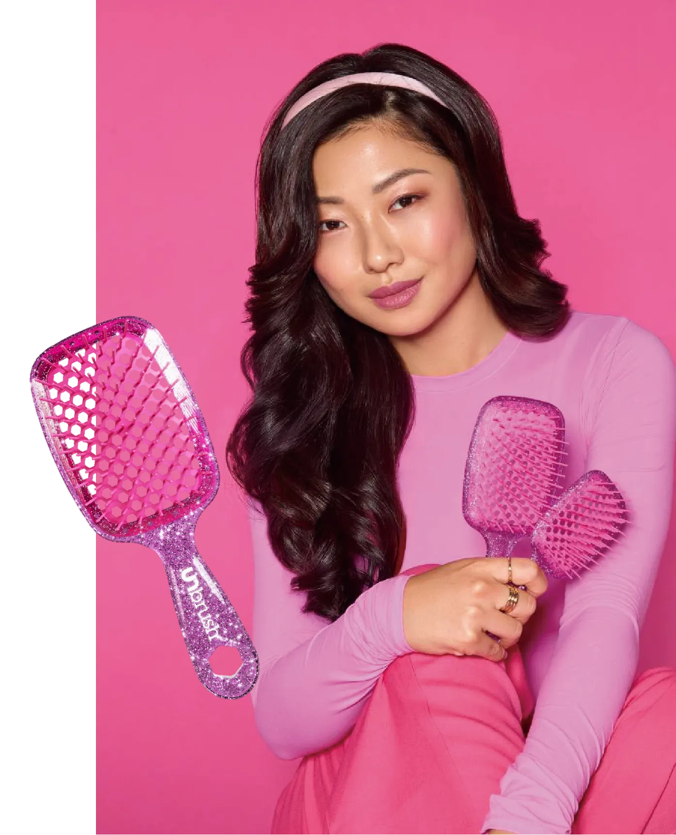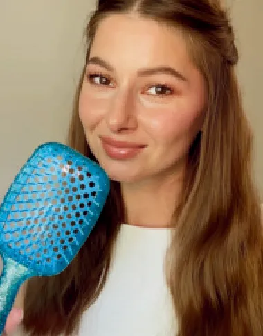 UNbrushは髪を強く引っ張ったりすることなく、からまりを解くのがとても簡単で感動しました。記録的な速さで髪全体をとかせました。普段は洗髪後、ブラシにかなりたくさんの毛が残ってしまうのですが、UNbrushを使うと抜ける髪の量がずっと少なくなります。TikTokのレビューは嘘ではありませんでした。」