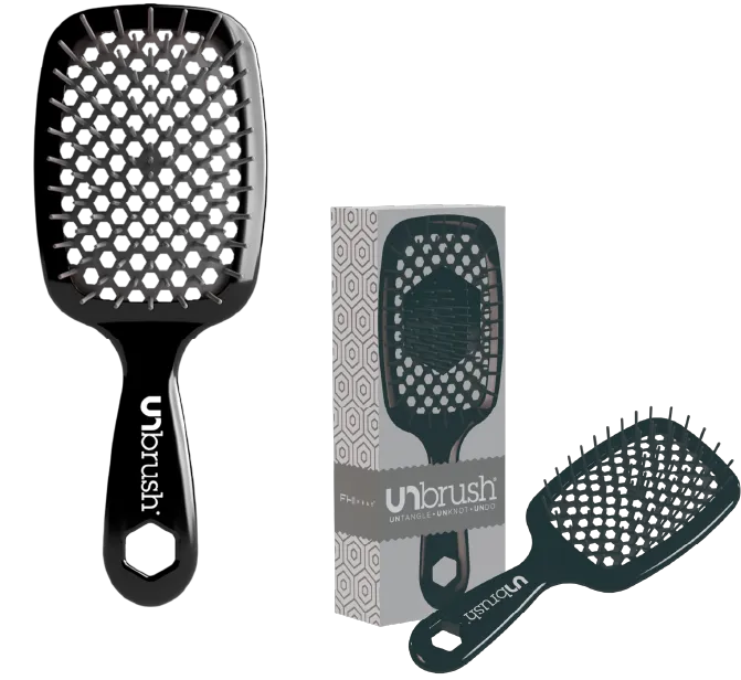 「UNbrushは柔軟性と、とても優しいタッチが特徴的です。痛みを伴わずに髪をスムーズにとかせます。優しくて軽いので、お子様に使うのが本当に気に入っています。穴が空いているので、お手入れも非常に簡単です。」