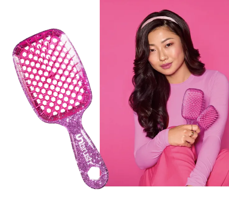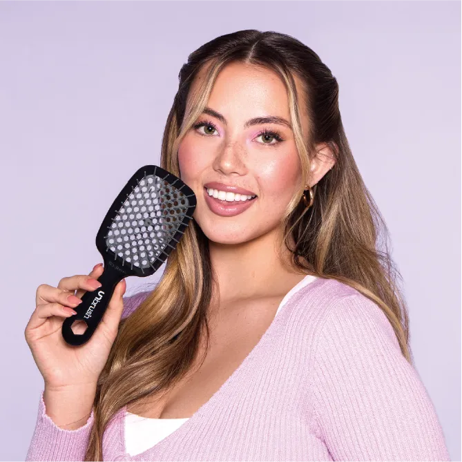 UNbrushは髪を強く引っ張ったりすることなく、からまりを解くのがとても簡単で感動しました。記録的な速さで髪全体をとかせました。普段は洗髪後、ブラシにかなりたくさんの毛が残ってしまうのですが、UNbrushを使うと抜ける髪の量がずっと少なくなります。TikTokのレビューは嘘ではありませんでした。」