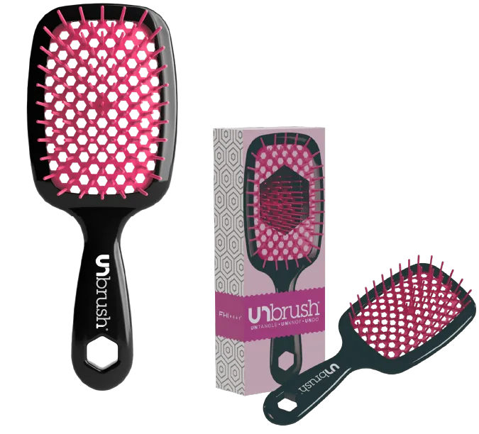 「UNbrushは柔軟性と、とても優しいタッチが特徴的です。痛みを伴わずに髪をスムーズにとかせます。優しくて軽いので、お子様に使うのが本当に気に入っています。穴が空いているので、お手入れも非常に簡単です。」