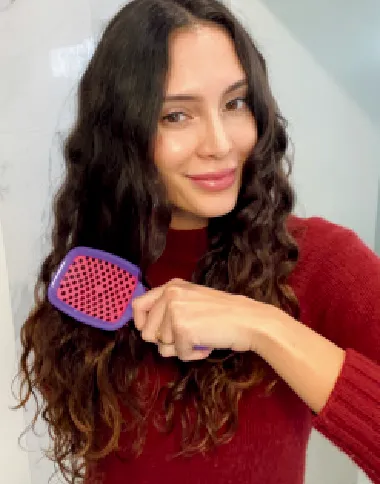しなるDuoFlexピンとハニカム構造により、髪への抵抗が少なく、頭皮の痛みや髪へのダメージ、抜け毛を減らします。