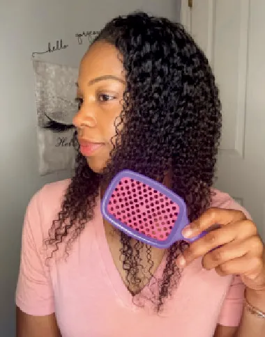 「これまで何十種類ものヘアブラシやもつれ取りコームを試してきましたが、このブラシは群を抜いています。通気性のあるデザイン、ピンの配置、そして滑らかな素材が、髪のからまりをスムーズに解いてくれるので、引っ張ったり切れたりすることがありませんでした。」